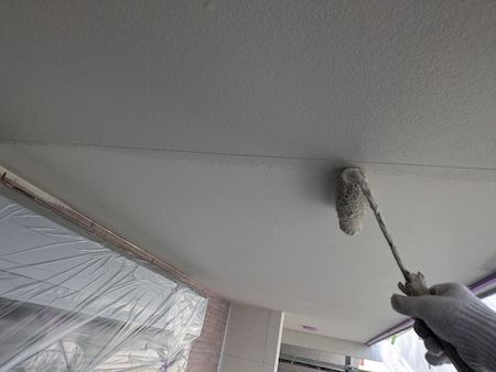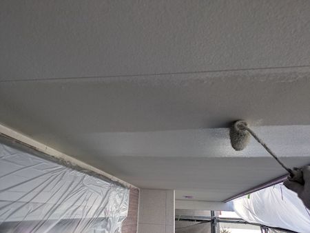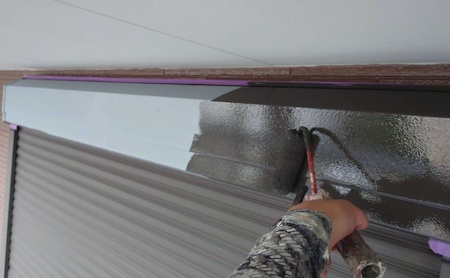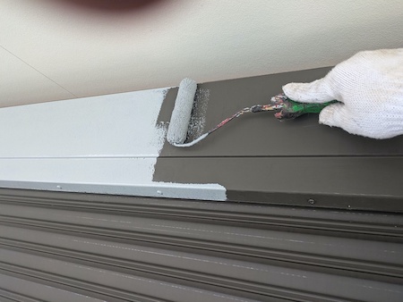 白く塗られた部分が下塗り完了した箇所です。ムラなく適量を塗っていくことで、塗装効果を発揮できるように中塗りします。