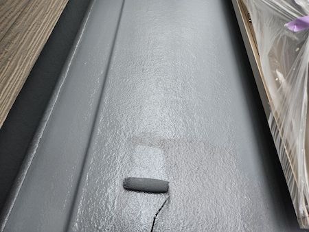 軒樋の塗装です。段差がある部分もカスレがないよう細部まできっちり塗装します。