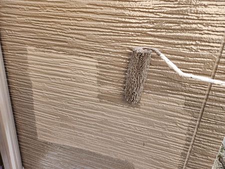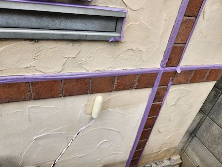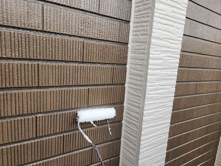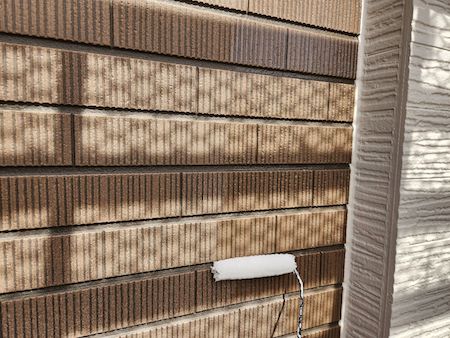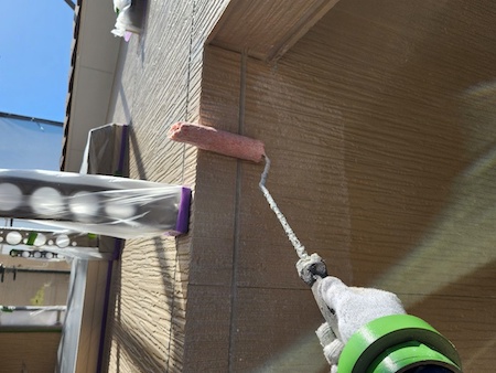 外壁の素材、下地の状態に合わせて選定した塗料で下塗りです。下地の状態によって最適な塗料と丁寧な技術で施工します。