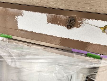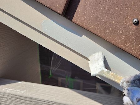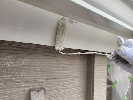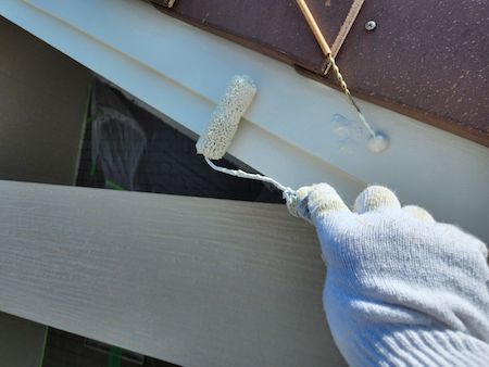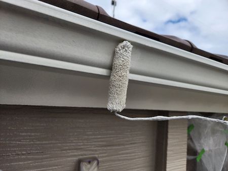 軒樋の裏側にある鼻隠しの塗装です。軒樋も鼻隠しも同時に作業を進めていきます。