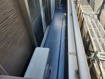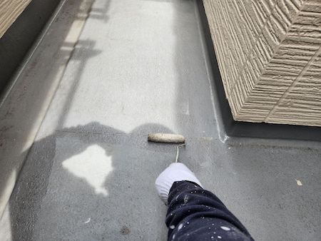 トップコートを2回塗って厚みを重ねベランダ防水層をしっかり保護していきます。