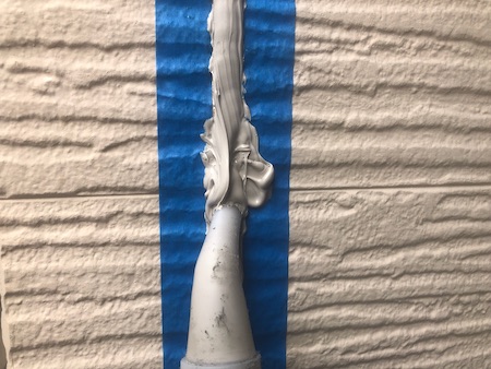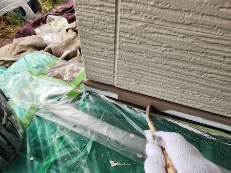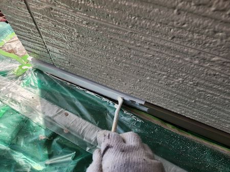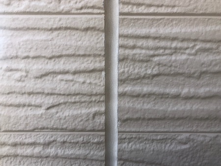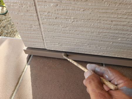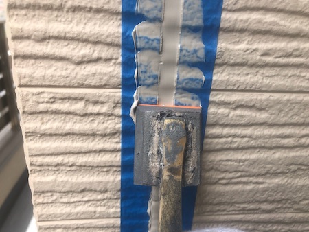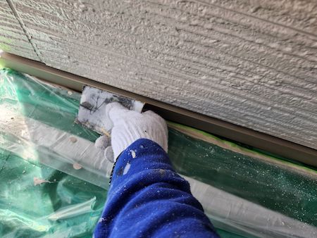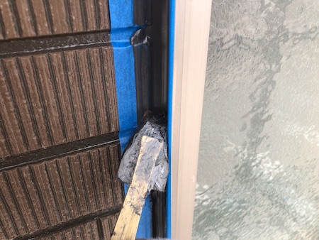 奥までシーリング材が入り、外壁とシーリング材が密着するようヘラでならします。