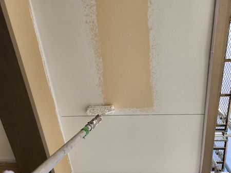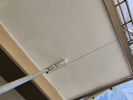 軒天は、湿気がこもりやすいため透湿性、防カビ性に優れた専用塗料を使用します。