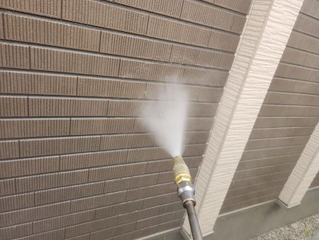 外壁塗装の効果を長持ちさせるためには、塗装前の高圧洗浄が重要です。表面の汚れを落とし洗浄後はしっかり乾燥させます。