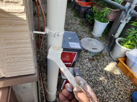 竪樋の塗装です。手を抜かず一つ一つ丁寧な作業を繰り返していきます。