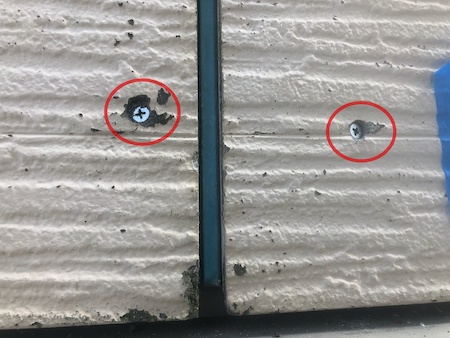 ビスで固定します。壁が浮いた状態でシーリングを打ち替えても再び切れてしまう可能性があるため作業前に補修します。