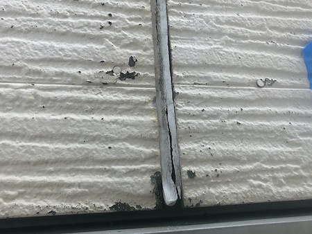 サイディングが浮いていて、目地シーリングが破断しています。放置しておくと隙間から雨水が侵入する恐れがあります。