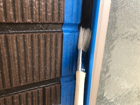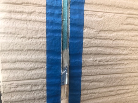 シーリングを撤去したら、きれいに仕上げるために目地にそってテープを貼り、接着剤の役目を持つプライマーを塗布します。