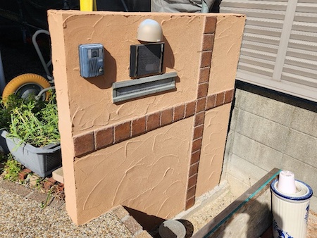 汚れが目立ちやすい門柱も、きれいが長持ちするよう塗装します。下塗りからです。