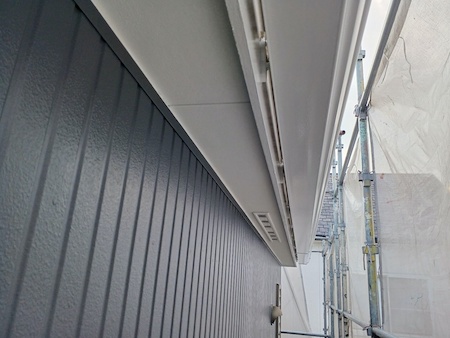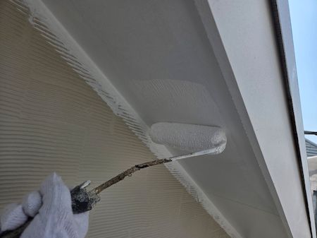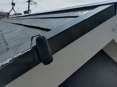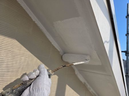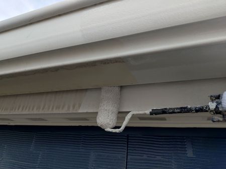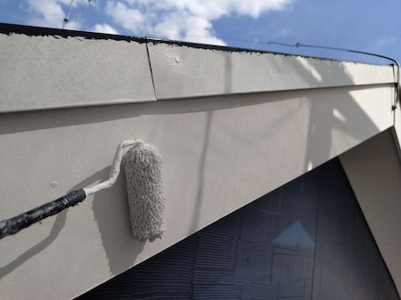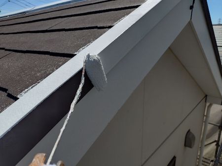 ケラバ板金も中塗り、上塗りを塗布していきます。下地の素材や状態によって、最適な塗料と丁寧な技術で施工します。