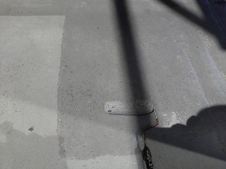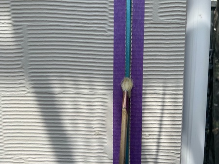 白く塗られた部分が下塗り完了した箇所です。ムラなく適量を塗っていくことで、塗装効果を発揮できるように中塗りします。