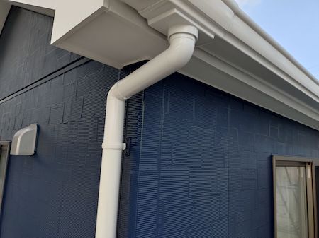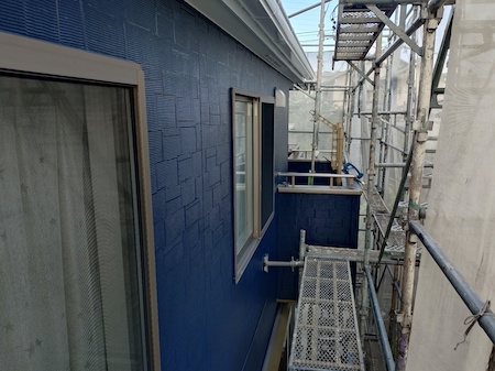 白系の外壁面をネイビー(黒に近いブルー)にガラリと塗り替え、濃いグレーの外壁とも絶妙にマッチして、スタイリッシュでおしゃれな仕上がりとなりました。