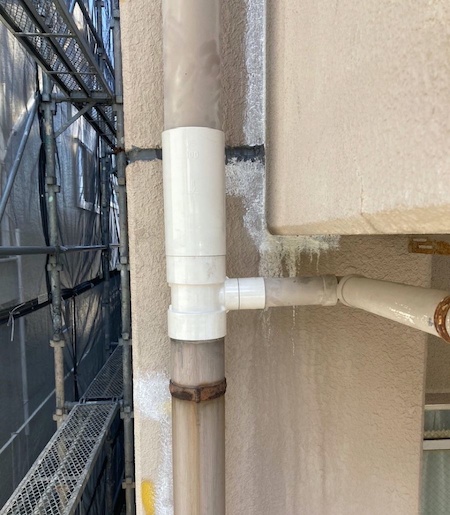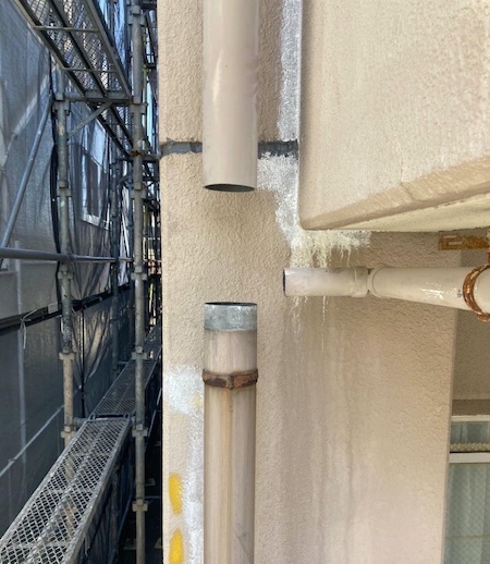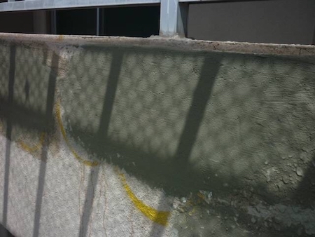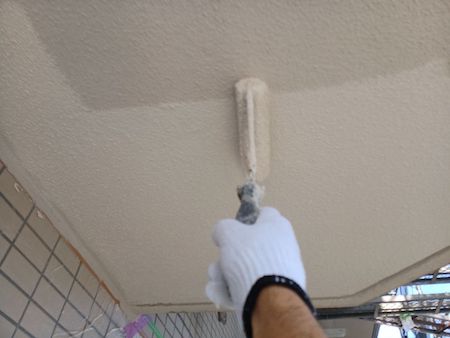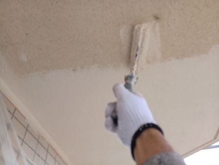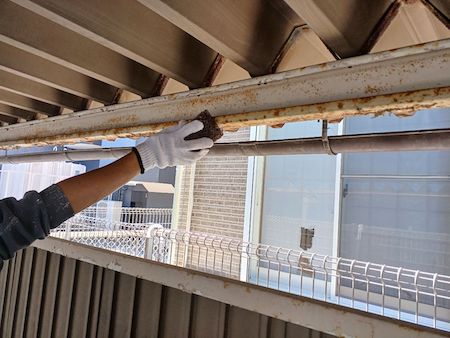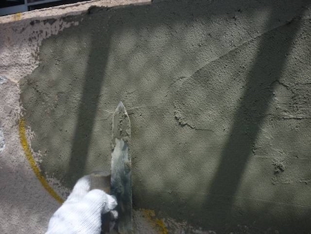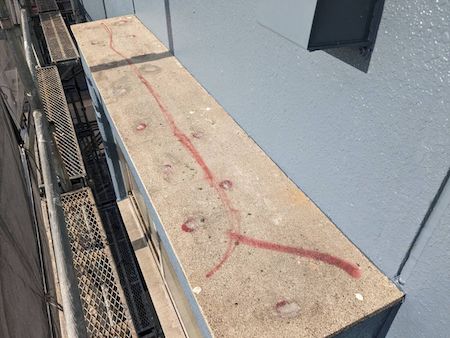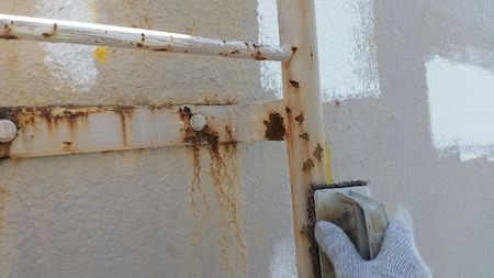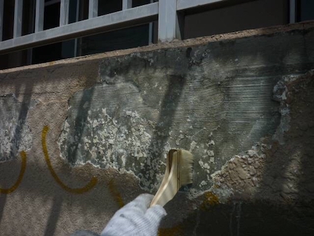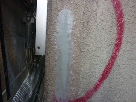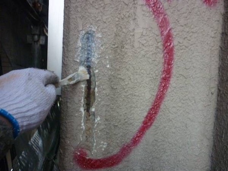 ひび割れを補修した跡がみられますね。すみずみまで汚れを除去することで、新しい塗料をしっかりと密着させます。