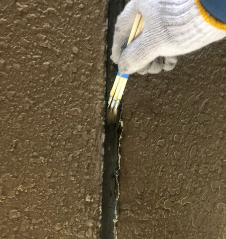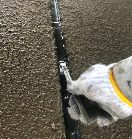 奥までシーリング材が入り、外壁とシーリング材が密着するようヘラでならします。そのあと数日しっかり乾かします。