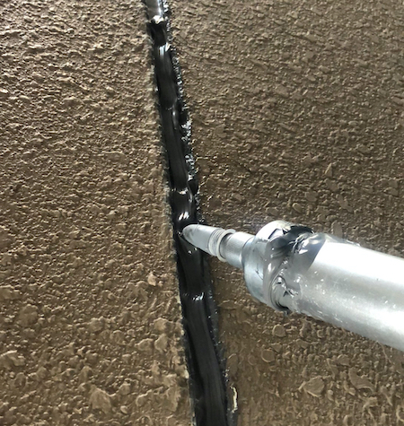 エポキシ樹脂を低圧で注入します。補修材が硬化するまでの間、時間をかけて、ゆっくりと、ひび割れに浸透させていきます。