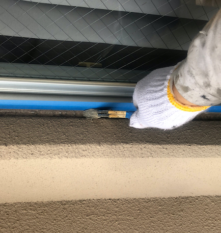 上塗りです。外観の印象を良くすることはもちろん、3回塗りを経て十分に塗膜の厚みを確保して、建物を劣化から守ります。