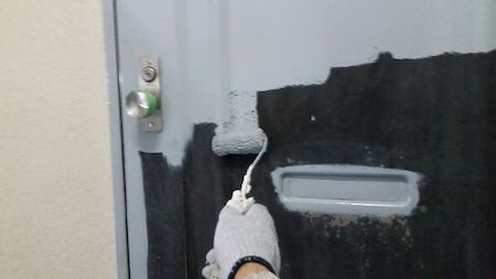 中塗りを塗っていきます。塗料を吸い込まないようにしっかりと下塗りしたので、下地の透けもなく発色がキレイになります。