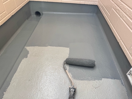 下塗り後、トップコートを2回塗って厚みを重ね、防水層をしっかり保護します。
