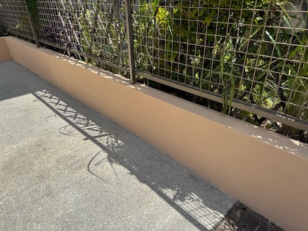 ベランダの壁は、塗料の色を変えツートンカラーに塗り分けていきます。下塗りがしっかり乾燥したら中塗りを塗布します。