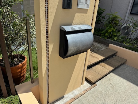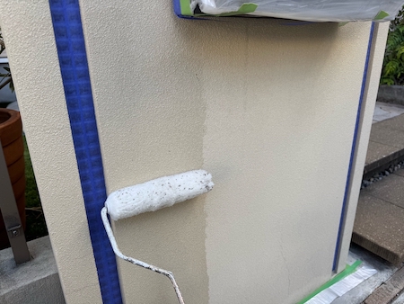 汚れが目立ちやすい門柱です。きれいが長持ちするよう塗装します。