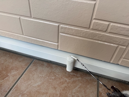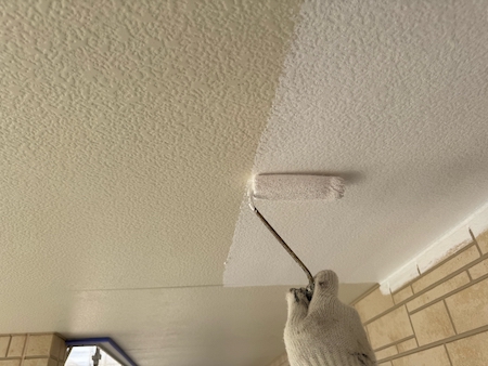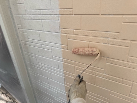 塗りムラが出ないよう注意しながら、中塗り、上塗りします。フチや境目などを先に塗りこんでからローラーで塗り広げます。