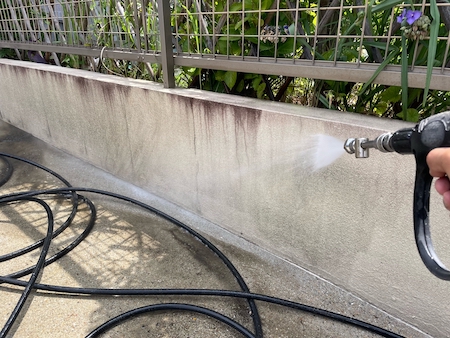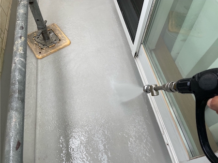 ベランダ床は、土ぼこりも溜まりやすく汚れていることが多い場所です。すみずみまで念入りに高圧洗浄します。