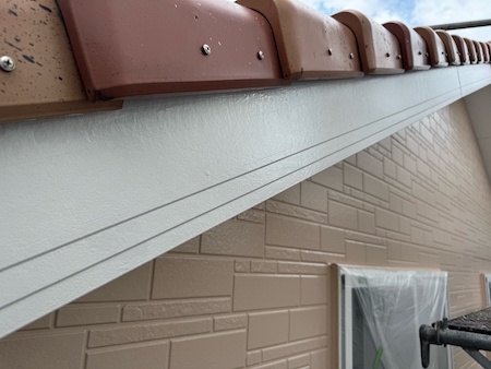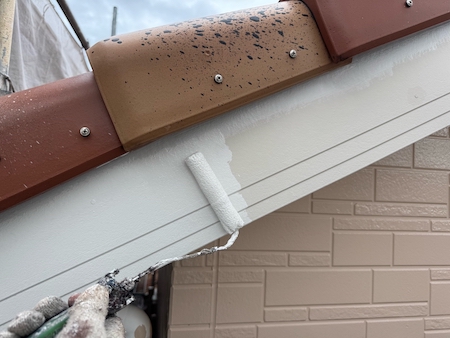 破風板です。段差がある部分もカスレがないよう、きっちりと塗装します。