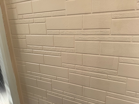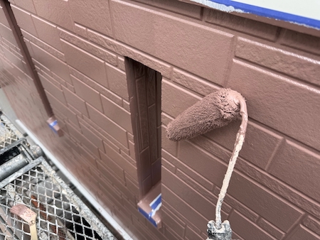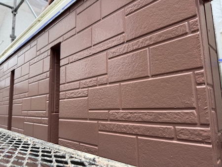 さらに上塗りして、塗膜劣化を抑制し耐候性を高めます。しっとりとした質感の温かみのある色に仕上がりました。