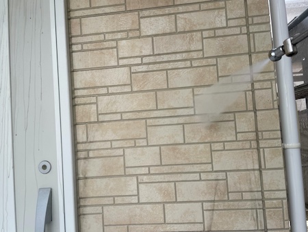 水圧により家の素材を傷めないように、洗浄する部分の材質や状態によって水圧を調節しながら、門柱をきれいに洗浄します。
