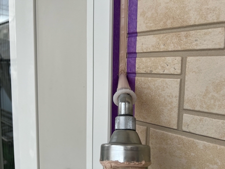 シーリングの色は、これから塗装する外壁の色に合わた近似色にて施工しています。