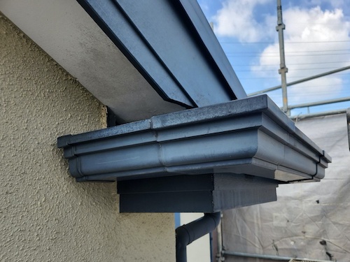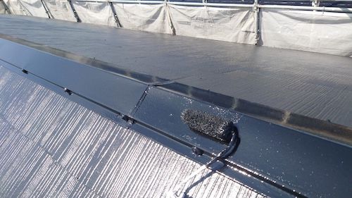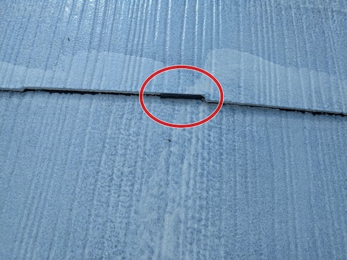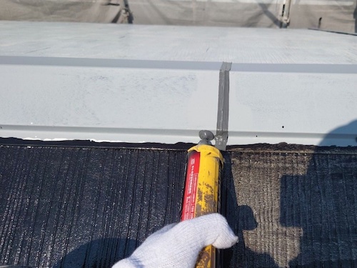 屋根と屋根の間にタスペーサー設置が確認できます。隙間ができることにより雨水の逃げ場ができ結露や雨漏りを防止します。