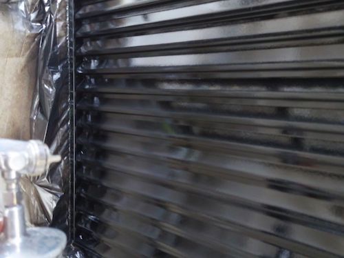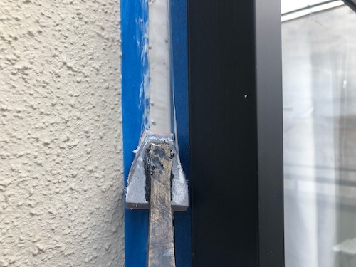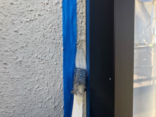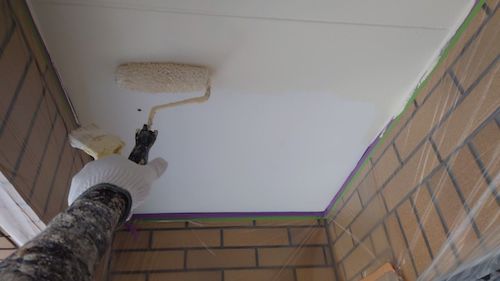 白く塗られた部分が下塗り完了した箇所です。ムラなく適量を塗っていくことで、塗装効果を発揮できるように中塗りします。