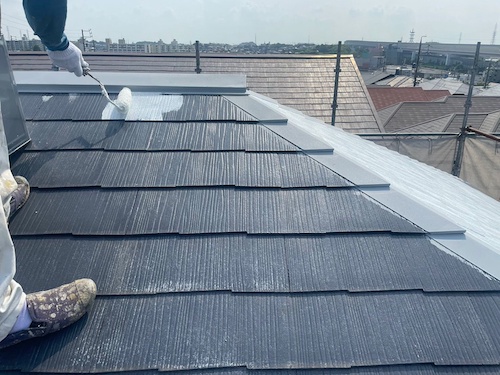見た目を整えるだけではなく屋根としての機能性も高めるために、塗膜の厚みなど細かい部分まで気を配り、上塗りします。