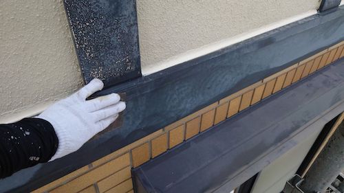 釘の浮きは打ち直し、釘頭にシーリングを充填してフタをしています。抜けの防止や微細な雨水の侵入を防ぎます。また、板金の接合部もシーリング補修しています。