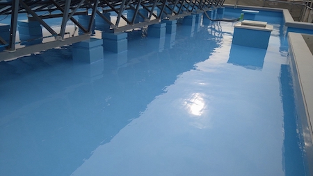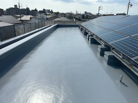 最後にトップコートを塗布して、屋上防水工事完了です。これでしばらく雨漏りの心配もなく安心です。