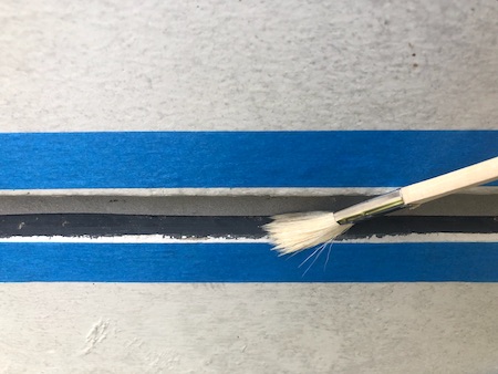 塗料の色を変えて塗装します。まずは、下塗りからです。塗料がしっかりと定着するための下準備です。