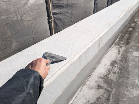ウレタン防水による改修工事を行います。屋上の笠木部分から作業をしていきます。