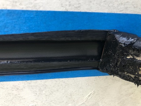 古いシーリングが残らないようキレイに撤去して、目地底が見えている状態です。新しいシーリングに打ち替えていきます。