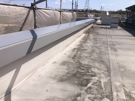 屋上の笠木です。突起物を取り除き、表面のザラつきを除去して施工面をきれいに清掃します。