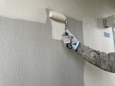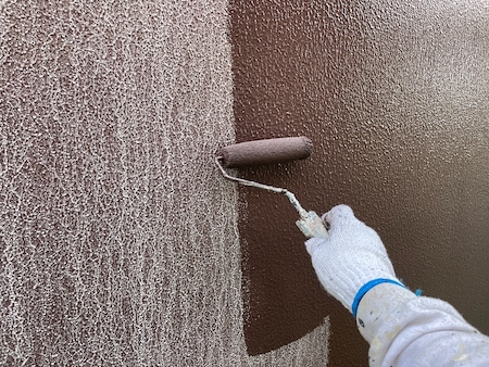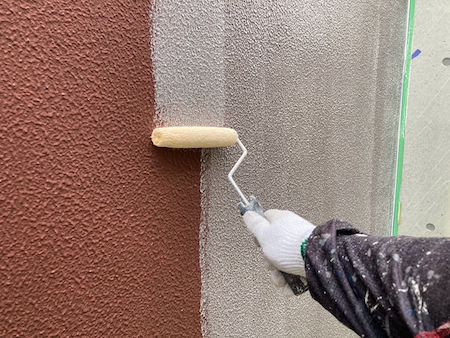 下塗りは、中塗り・上塗りの吸い込み過ぎを止め、下地外壁材の表面劣化保護・強化する役割もあり大事な工程になります。