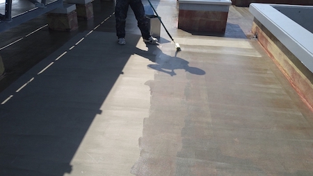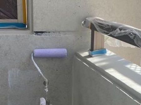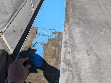 ウレタン塗膜防水工事を行います。接着性を高めるプライマーを塗布していきます。