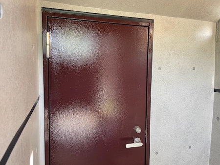 供用部のPS扉の古い塗膜や錆を削り落とし、下地処理をしっかり行います。