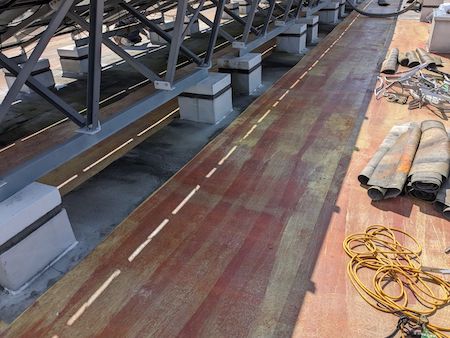 屋上の床面の改修を行っていきます。既設の防水シートをすべて撤去していきます。