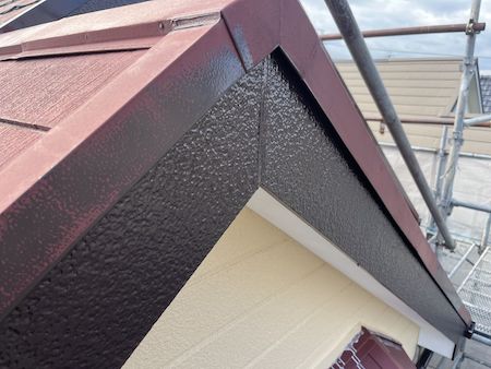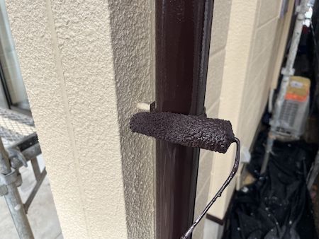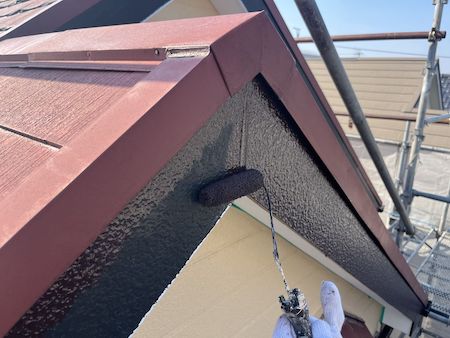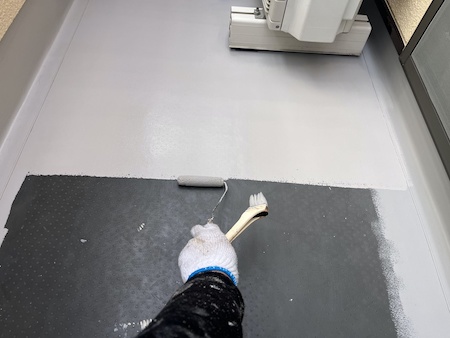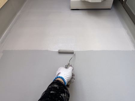塗りムラがないよう確認しながら上塗り仕上げです。丁寧に塗り重ねることで適切な厚みと耐久性に優れる塗膜が完成します。
