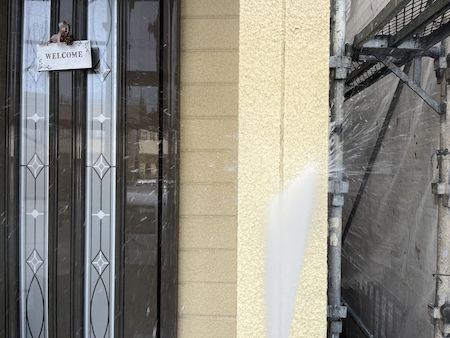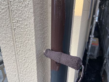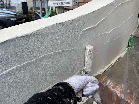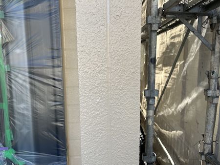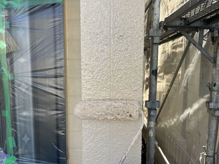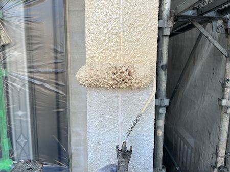 外壁は、リシン外壁の特性上、下塗りの効果が現れにくいため、通常1回の下塗りを2回実施し、その後、中塗りと上塗りをして丁寧に仕上げています。