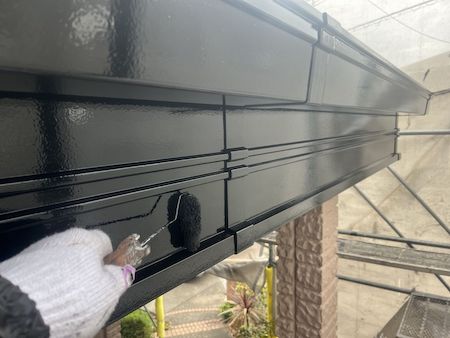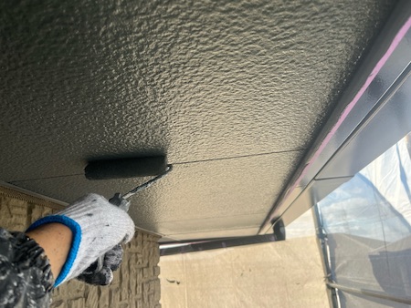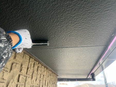 軒天の塗料は、艶消しタイプなので、仕上がりが落ち着いた印象になります。