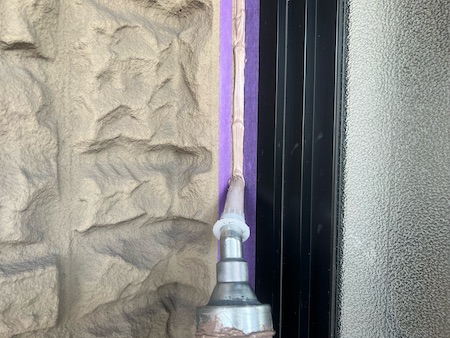 耐候性の高い塗料に見合ったシーリング材SRシールH100を使用して、充填中です。