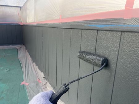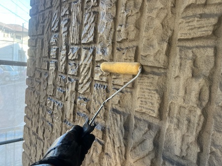 中塗り、上塗りは、ローラーにて塗装していきます。