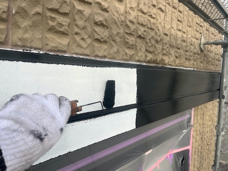 下塗り2回目です。飛散しないよう周辺への配慮を行い作業しています。