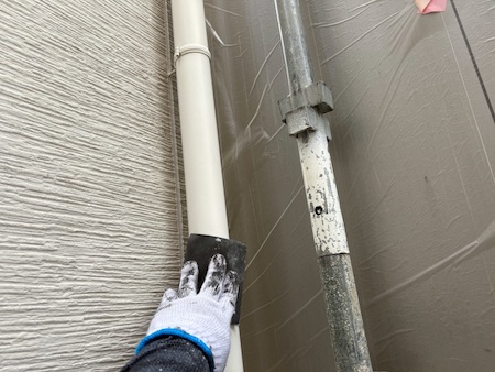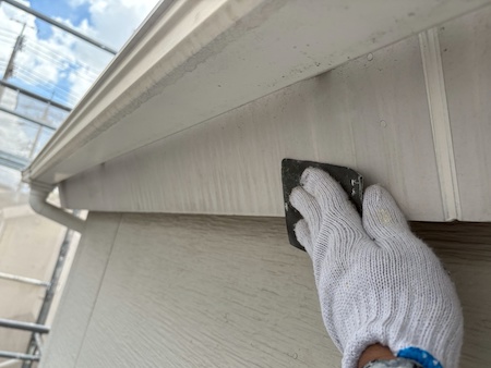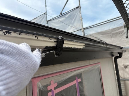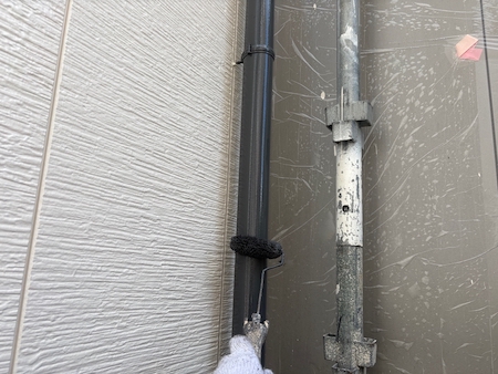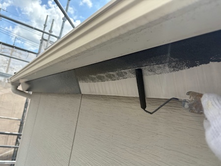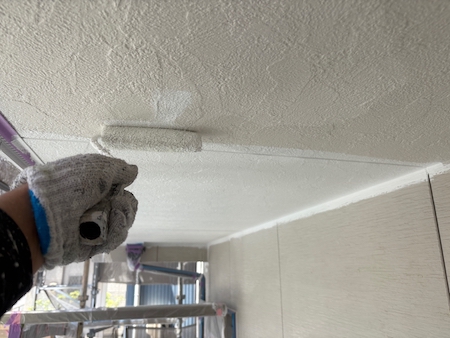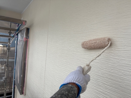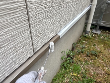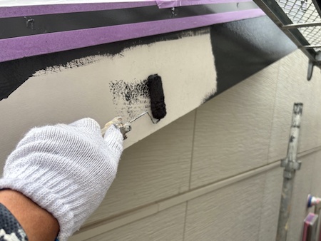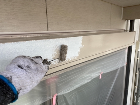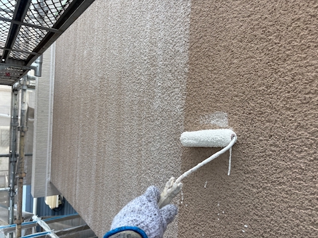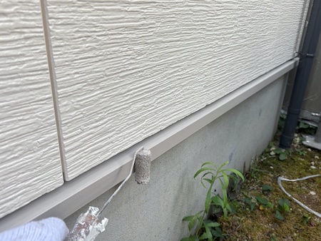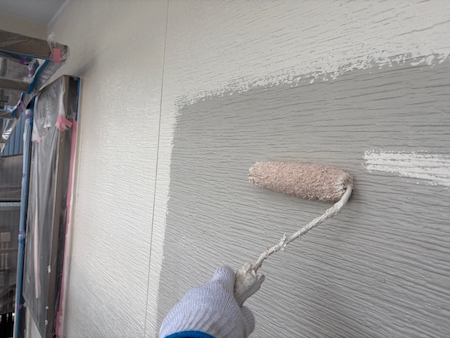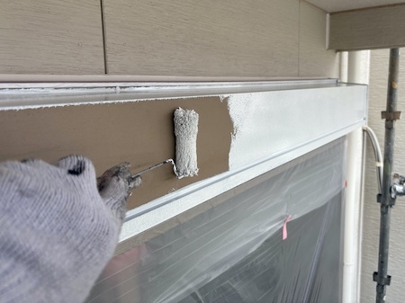 白く塗られた部分が下塗り完了した箇所です。ムラなく適量を塗っていくことで、塗装効果を発揮できるよう中塗りします。